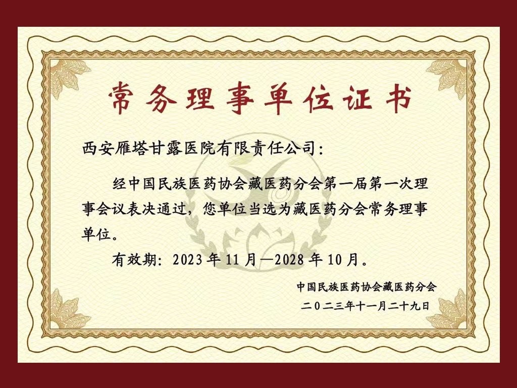 热烈祝贺!西安雁塔甘露医院再添新辉煌!经中国民族医药协会藏医药分会第一届第一次理事会议表决通过,当选为中国民族医药协会藏医药分会常务理事单位!